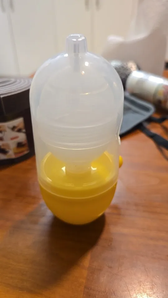- Place a whole egg inside the mixer and lock the cap.